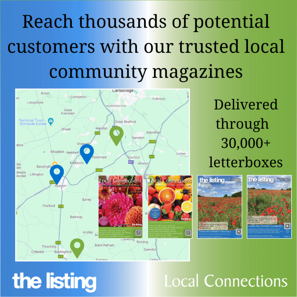 In addition, our new Local Connections Magazines reach over 15,000 households in SG9, SG11, CB22 and CB23 postcodes