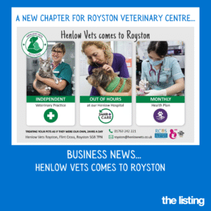 Henlow Vets are so thrilled to be welcoming the patients, clients and staff of Royston Veterinary Centre into our Henlow Vets family. They look forward to sharing their wealth of experience with the existing team at Royston Vets and meeting you and your pets!