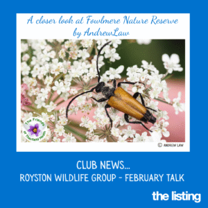 The final exciting and informative talk in this season’s Royston Wildlife Group programme, part of the Friends of Therfield Heath & Greens, will be on Tuesday 24th February with an illustrated presentation, ‘A closer look at Fowlmere Nature Reserve’ by Andrew Law Andrew is an amateur naturalist and keen photographer and also volunteers at Fowlmere