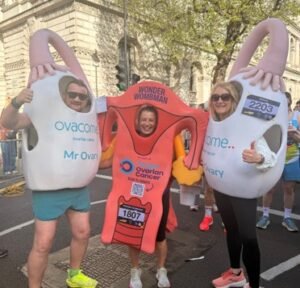 You don’t need to run a marathon in an ovary costume to make a difference (though you’re welcome to join me!). There are many ways to get involved—whether it’s hosting a coffee morning, organising a bake sale, or simply sharing information about ovarian cancer with your community.