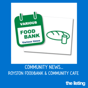 Royston Food Bank/Community Cafe is open to all on Wednesdays and Saturdays 9-11am at Royston Evangelical Church. Donations are always welcome at other times, when the church building is open for other activities.