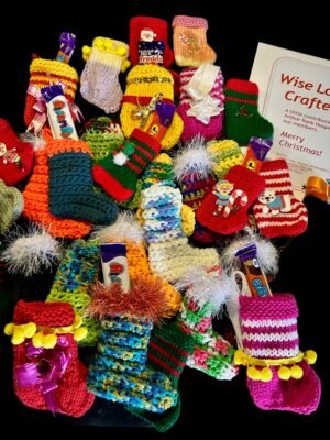 Over 100 stockings were handmade knitted and crocheted by incredibly talented members of Wise Local Crafters for the Arthur Rank Hospice ‘Christmas Stockings Appeal’. The club also contributed by sending in sweetie treats to be placed inside the stocking in the hope to raise money for a very worthy cause.