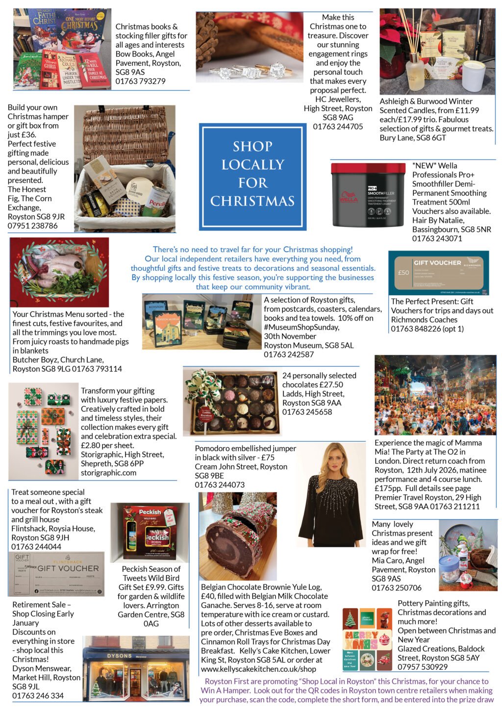 There’s no need to travel far for your Christmas shopping! Our local independent retailers in Royston and SG8 have everything you need, from thoughtful gifts and festive treats to decorations and seasonal essentials. By shopping locally this festive season, you’re supporting the businesses that keep our community vibrant.