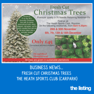 Fresh Cut Christmas Trees at The Heath Sports Club (carpark): 8am – 4.30pm on the following weekends: