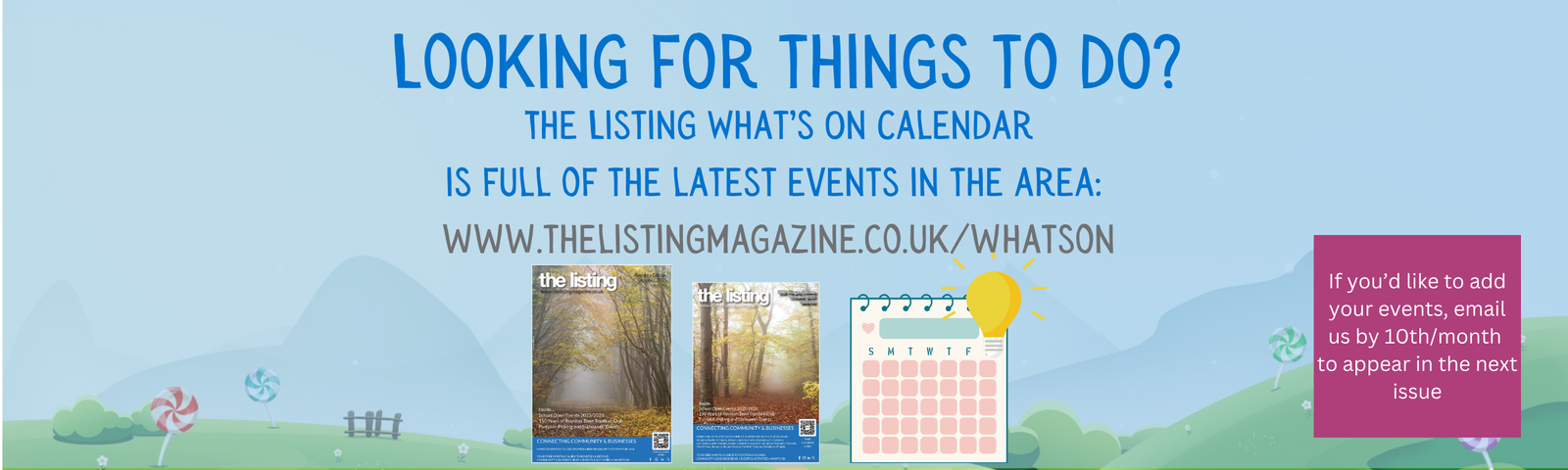 Email your events to hello@thelistingmagazine.co.uk to be included online and in our printed magazines in the month of the event (subject to space and other terms.)